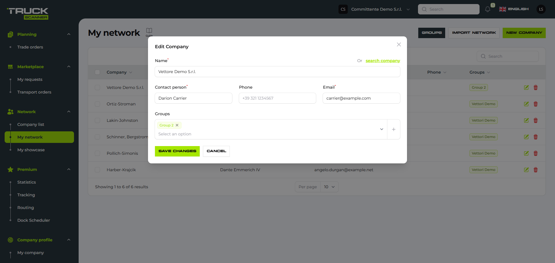 Questa guida spiega come utilizzare la sezione "Il mio network" per centralizzare la gestione di tutti i vettori e spedizionieri con cui l'azienda collabora, organizzarli in gruppi e condividere le richieste di trasporto in modo efficiente.