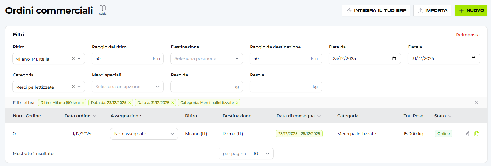 La sezione Ordini Commerciali è il punto di partenza per la gestione dei trasporti della tua azienda su Truckscanner. Qui puoi inserire o importare automaticamente tutti gli ordini di vendita o acquisto che necessitano di un servizio di trasporto.