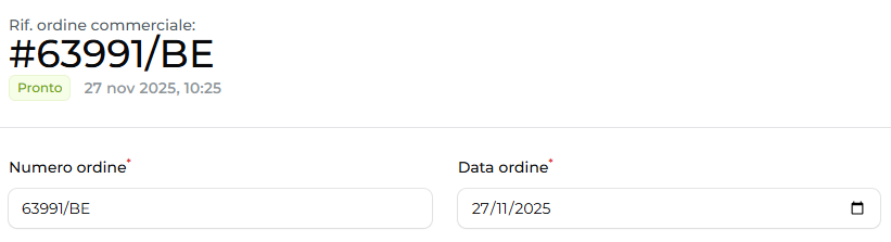 Numero ordine* : Inserisci il codice identificativo dell'ordine (es. il numero dal tuo gestionale).