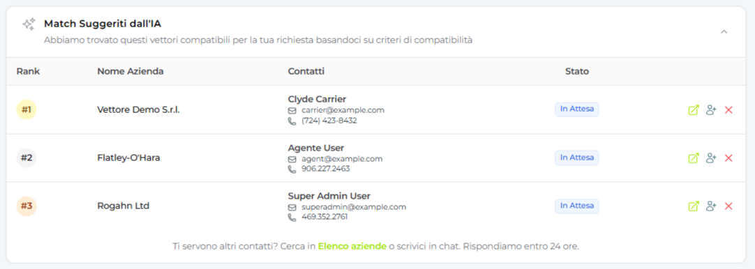 Novità: il nostro sistema AI ti propone automaticamente dei Match con vettori del network, permettendoti di contattarli direttamente!